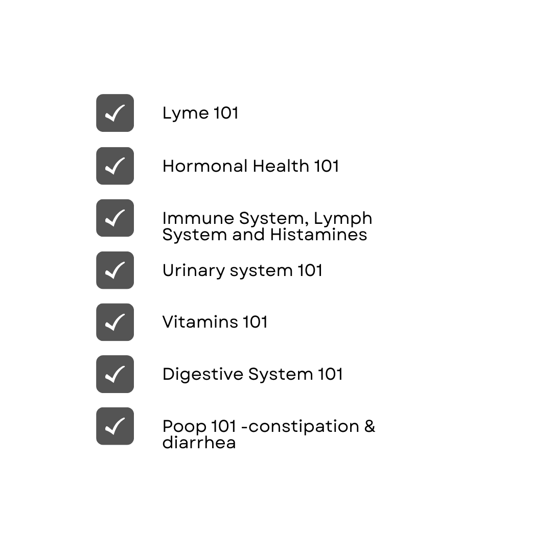 And because the library keeps growing, you’ll always have access to both the basics and advanced protocols. Some information may not be needed at the start of your healing journey — but 3–6 months in, you’ll be grateful those answers are already waiting for you.